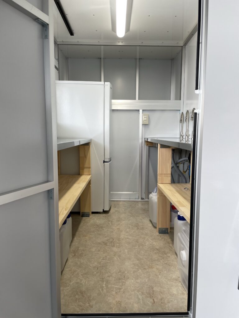 また、当社のベースとなるキッチンBOX設計に、CHILL様のメニュー構成や営業スタイルに合わせたオーダーメイドカスタマイズを施し、実用性とデザイン性を兼ね備えた一台に仕上げています。